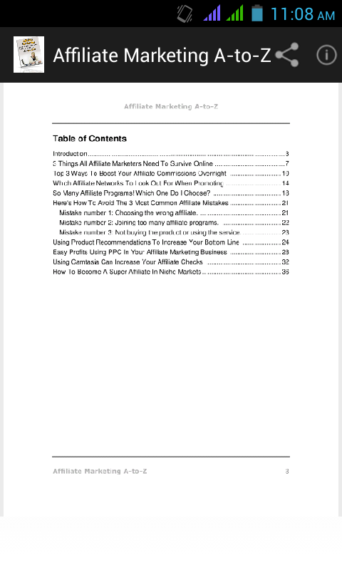 Affiliate Marketing A to Z app discusses about why you should start with affiliate marketing, how to choose an affiliate program that is a good fit for you, how to make money from affiliate marketing, tips and strategies to find the best affiliate product or service for you, affiliate marketing FAQs, affiliate marketing precautions and affiliate marketing jargons.